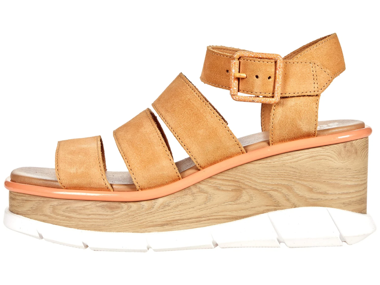 - Wrapped midsole appears wooden and is supported by a thick rubber cupsole.