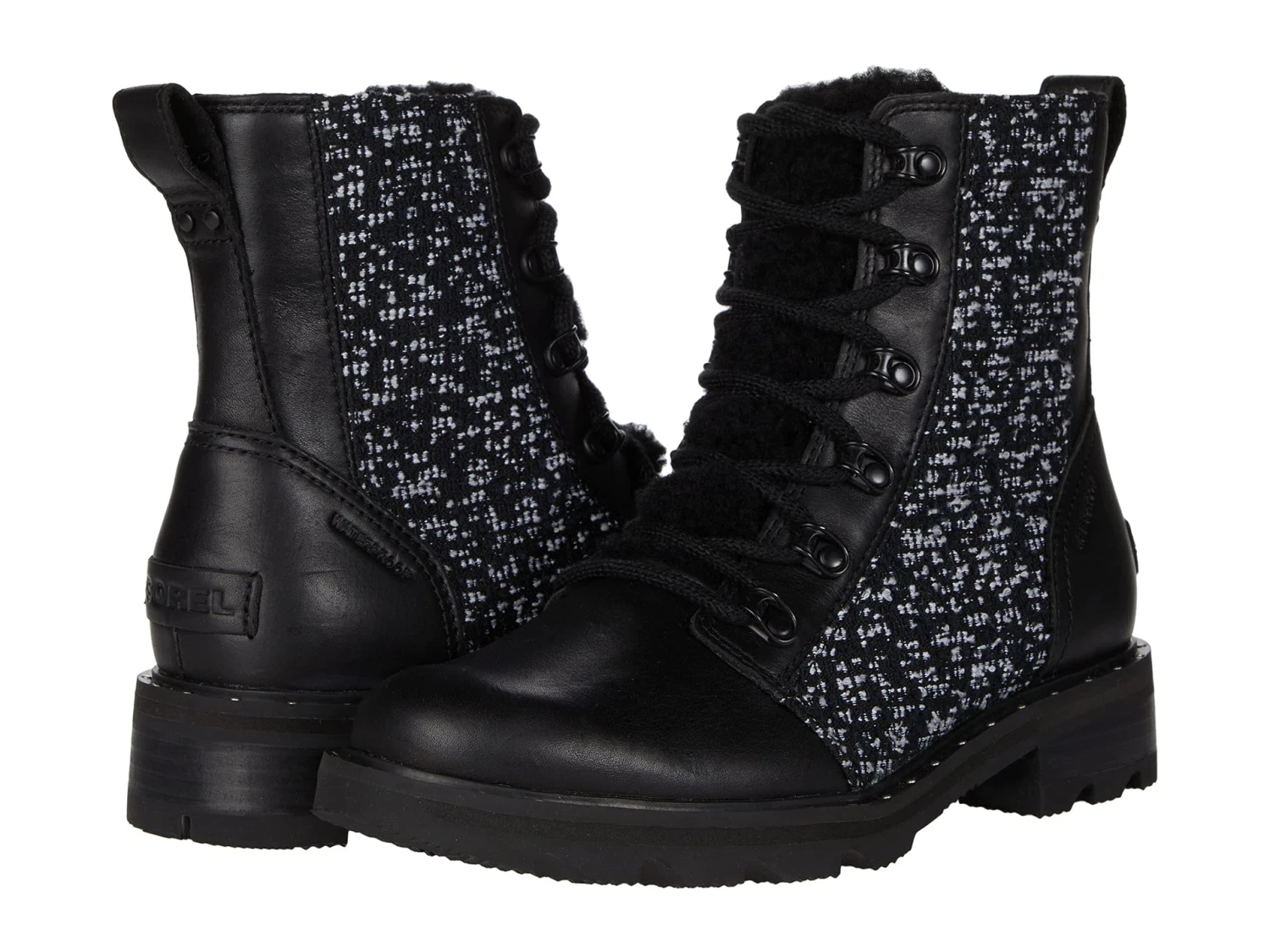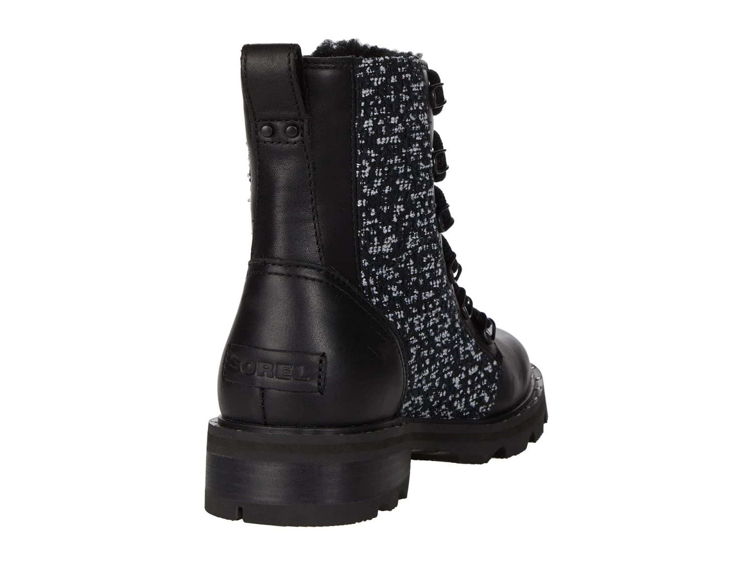 - Lace-up winter boot with sturdy fabric laces and metal hardware for a secure fit.