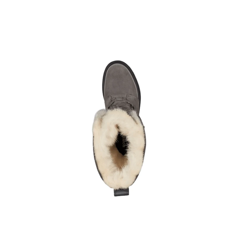 - Waterproof suede and PU coated leather combination with faux fur collar. Microfleece lining. Waterproof seam-sealed construction. Laces are not waterproof.